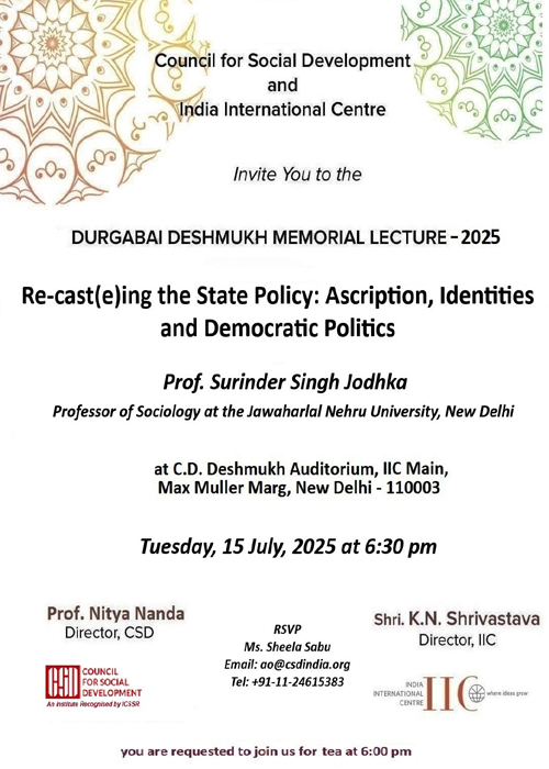 For over five decades, the Council for Social Development (CSD) has functioned as a non-profit, non-partisan, vibrant research institution engaged in issues of social development, especially the welfare of the marginalised. In 1962, CSD began its journey as an informal study group at the India International Centre (IIC), New Delhi. Prominent social workers and social scientists, under the leadership of the legendary freedom fighter and social worker Durgabai Deshmukh, were part of this group. Read More